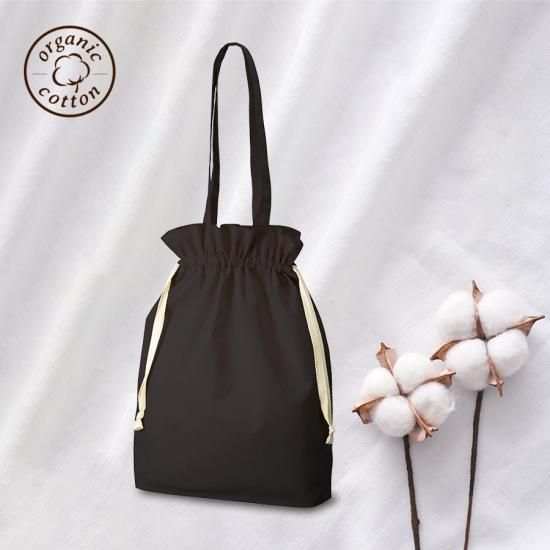 オーガニックコットンを使用したマチ付き巾着トートです。