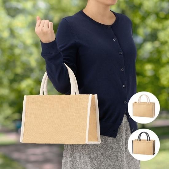 パイピング&ハンドル部分を配色にしたデザインのジュート素材バッグです。