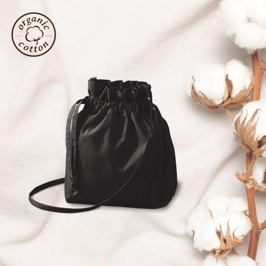 [MARKLESS STYLE] TR-1300-009 オーガニック厚手コットン 巾着ショルダーバッグ ブラック