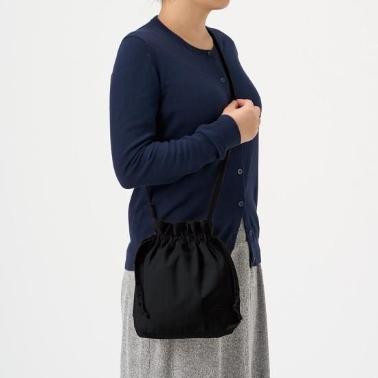 巾着紐とショルダーが別紐なので、肩掛けしながらの開閉もしやすいです。