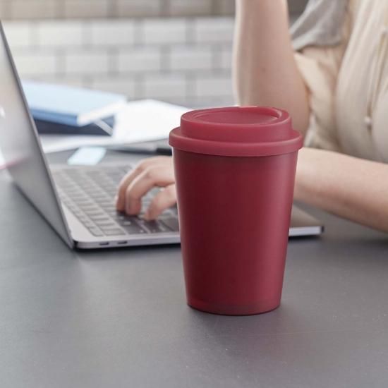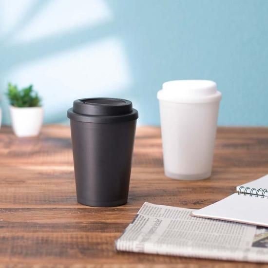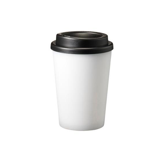 プラスチック2層構造で、温かい飲み物を入れても外側が熱くならず、安心して持ち運びいただけます。