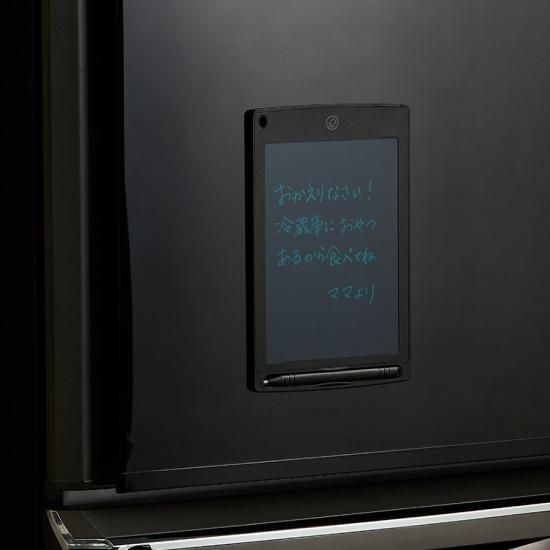 書いたメモは本体上部の消去ボタンを押すと瞬時に消すことができ、消し後が残らず綺麗な画面にできるので