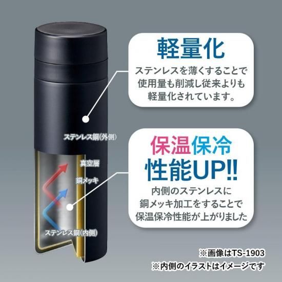 本体のステンレスを薄くしたことで真空層が広がり、内側はメッキ加工を施すことにより熱を逃しにくい仕様になっています。