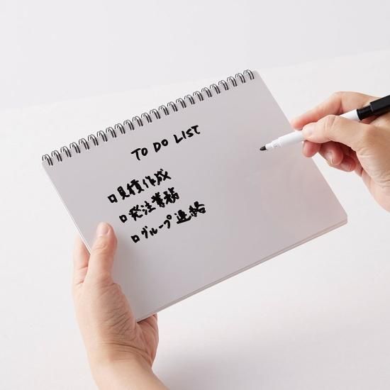 軽くて持ち運びに便利なA5サイズのホワイトボード型ノートです。
