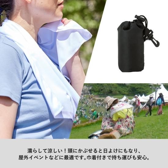 巾着付き、フェイスタオルサイズの涼感タオルです。