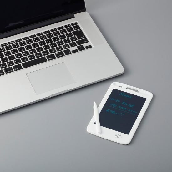 付属のペンやお手持ちのタッチペンで繰り返し書き込むことができる、ごみを出さないエコな電子メモです。