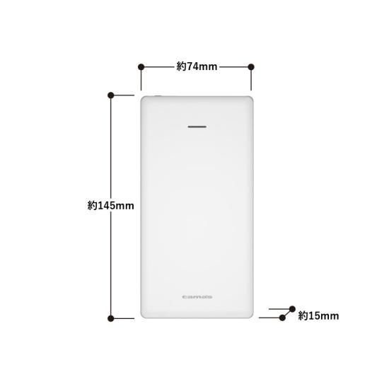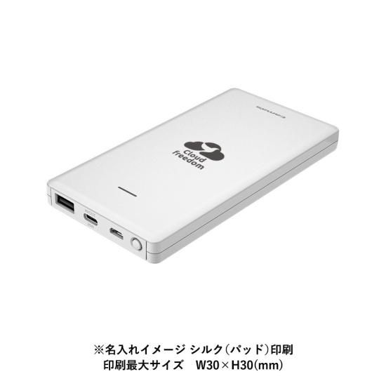 大容量リチウムイオンポリマー電池10000mAhを内蔵し、スマートフォンを複数回充電可能です。