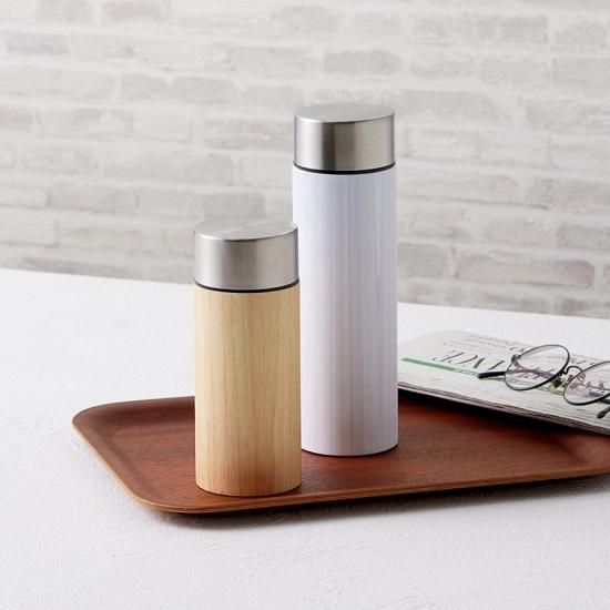 モダンな木目デザインが個性的のサーモボトルです。