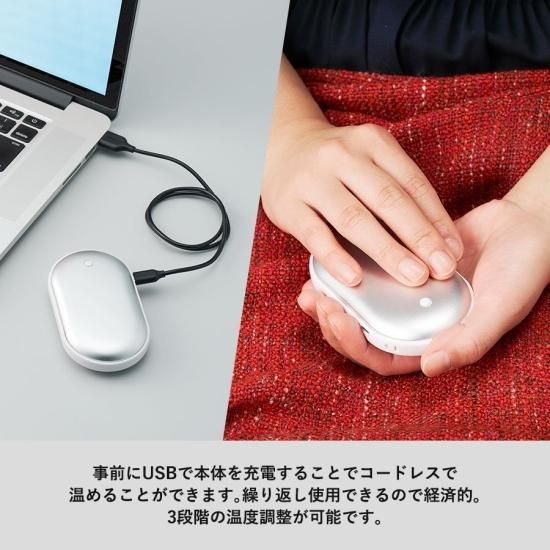 USB充電ができる手のひらサイズのエコカイロです。