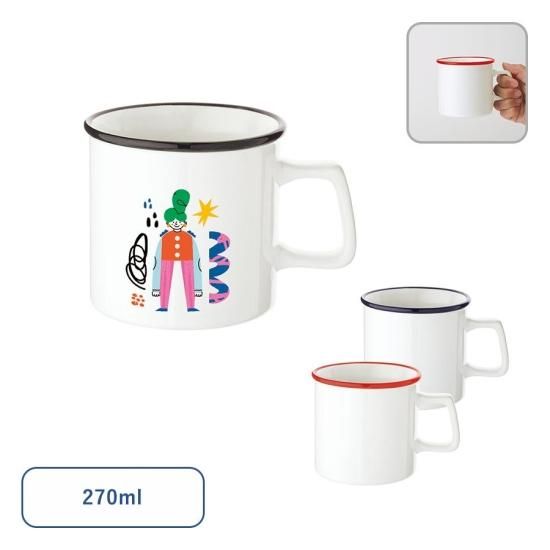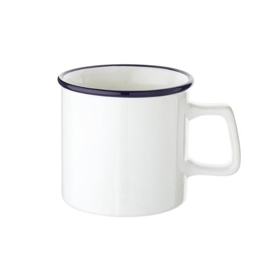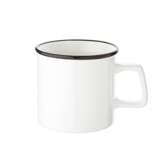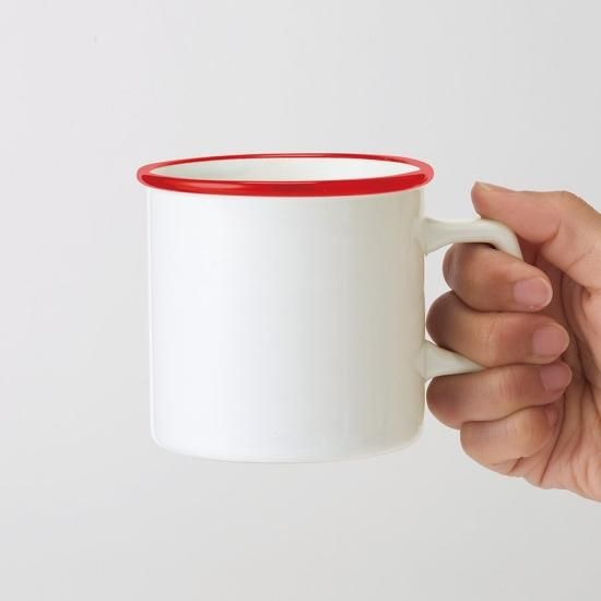 ホーローのようなふっくらした口元の差し色が目を引くマグ