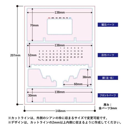 オリジナル型抜きで好きなカタチにできるアクリル卓上カレンダーです。