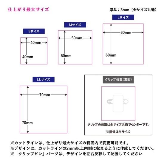 オリジナル型抜きで好きなカタチにできるアクリルバッジです。