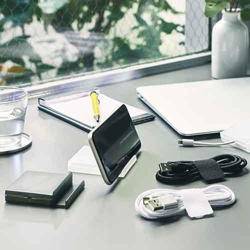 本体にコードをセットしつまみを回すだけでコードを巻き取ることができ、きれいに収納できます!スマホスタンドも付いているので動画を楽しみながら充電ができます
