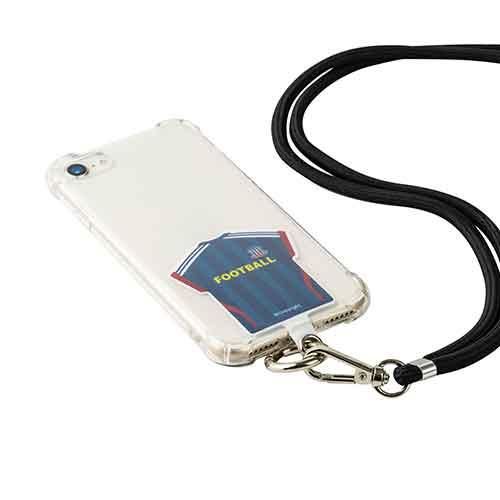 スマートフォン本体とスマートフォンケースの間に挟み込むようにして挿入することで、キーホルダーやストラップを取り付けられるようになり、ネックストラップを装着すればショルダータイプのスマートフォンケースとしても利用できるようになります