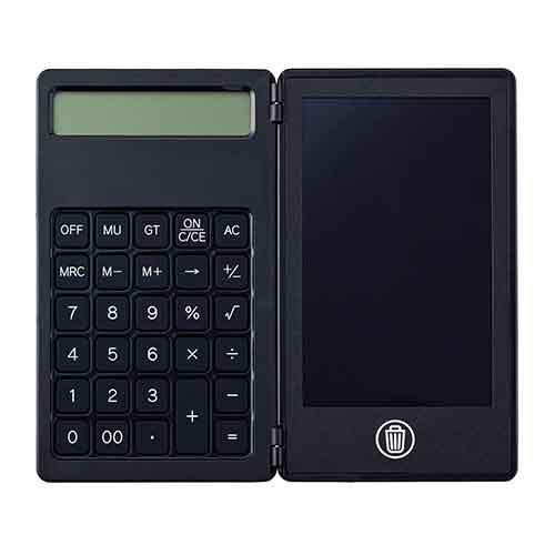 電子メモパッドに電卓が付いた高機能商品!画面を傷つけずに折りたたんで持ち運べるため、さまざまな場所で活躍します