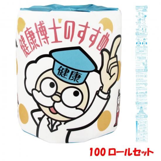 健康博士のすすめトイレットペーパー 1R個包装 100ロール入り(ケース販売) 114mm×30mダブル(2枚重ね) 再生紙100% プリント