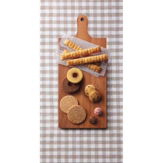 ●チョコチップクッキー×6、ロングスティックパイ×6、バウムクーヘン×4(ココア・バニラ×各2)、ゴーフレット×6(チョコ・バニラ×各3)、チョコレートクランチ×4(ミルク・ストロベリー×各2)