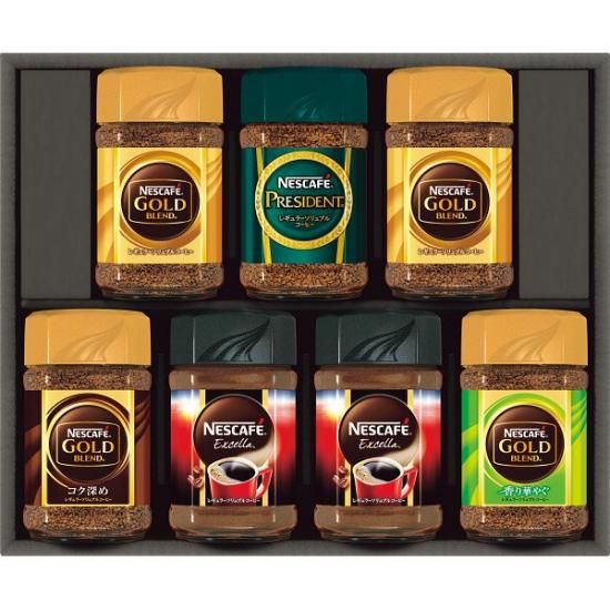 ●ネスカフェゴールドブレンド65┣g┫×2、ゴールドブレンドコク深め65┣g┫×1、ゴールドブレンド香り華やぐ65┣g┫×1、プレジデント65┣g┫×1、エクセラ80┣g┫×2