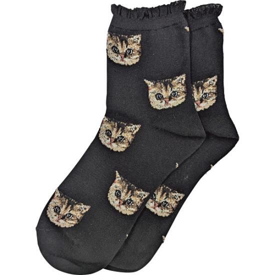 ヌネットフェイス総柄のレディースソックス。履き口フリル仕様のフェミニンなデザインです。ロークルー丈。