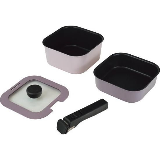 調理も収納もコンパクトに。スタッキングできる角型の着脱フライパンセットです。