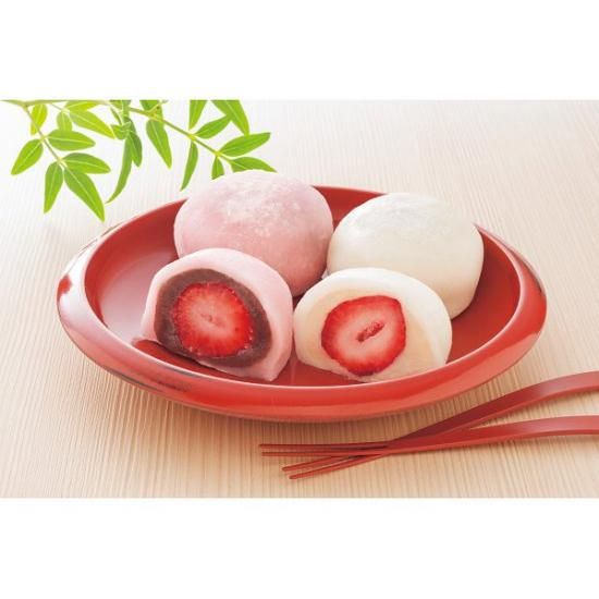福岡の苺農家さんが愛情たっぷりに育てたLサイズの博多あまおうを、ごろっと1玉使用した紅白2種類の苺大福。一口頬張ると、あまおうの酸味と、あんこの上品な甘みがお口の中に広がります。半解凍で美味しくお召し上がりいただけます。フルーツ大福で有名な京都養老軒監修。