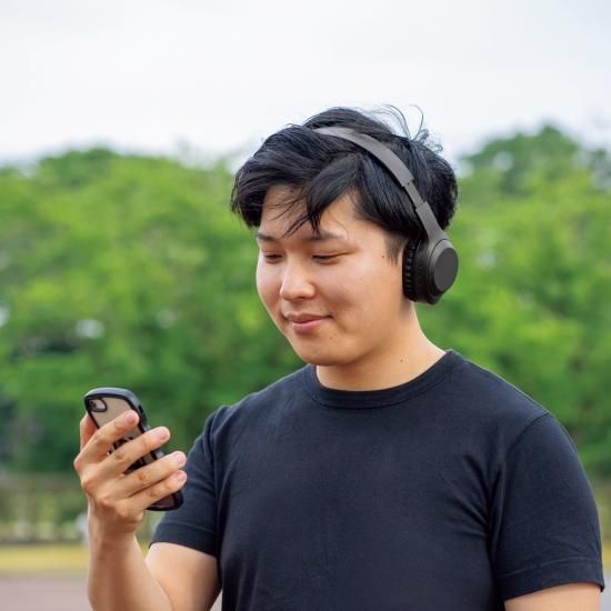"ワイヤレスで屋外でも音を楽しむ。折りたためて持ち運びもラク。MicroSDカードや有線でも使用できます。
