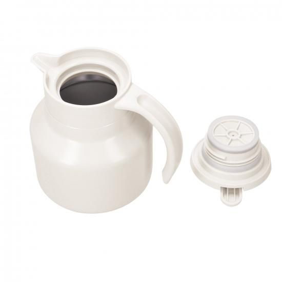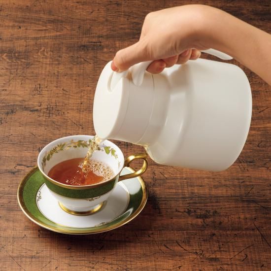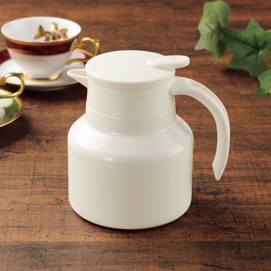 保温も保冷もOK、飲み頃温度をキープして手近に置いておける。押せば注げるワンタッチレバーも便利。
