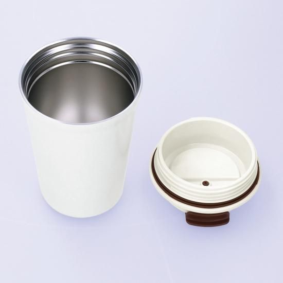 片手で楽々、ワンプッシュオープンのステンレスマグ。
