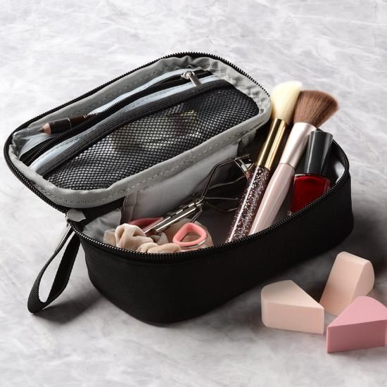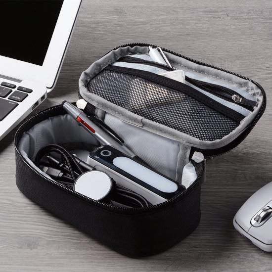 高さのある容量たっぷりのポーチはいろんな小物の収納に便利。