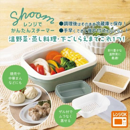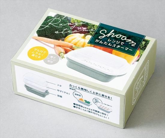レンジでチン!手軽においしい蒸し料理。 コンパクトに収納できて、冷凍から温めまでOK。 蒸し料理などの調理にも使用できる便利なアイテムです。 電子レンジでチンするだけで、温野菜や冷凍食品を ふっくら蒸し上げることができます。