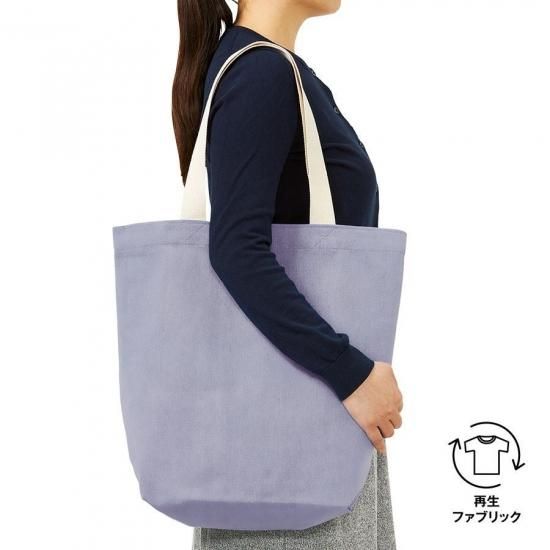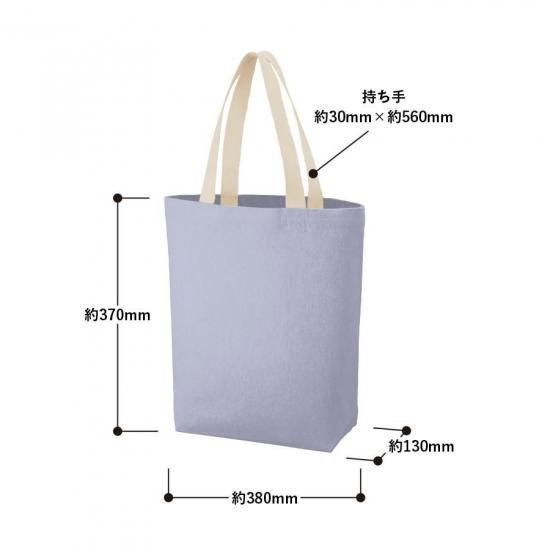 10オンスのしっかりとした生地感でマチも広く、大きめサイズでお買い物の際や荷物が多いときにも活躍します。