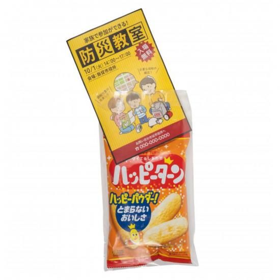 透明の袋に有名メーカーの商品と貴社オリジナルのラベル(チラシ)をセットしてお届けします♪
