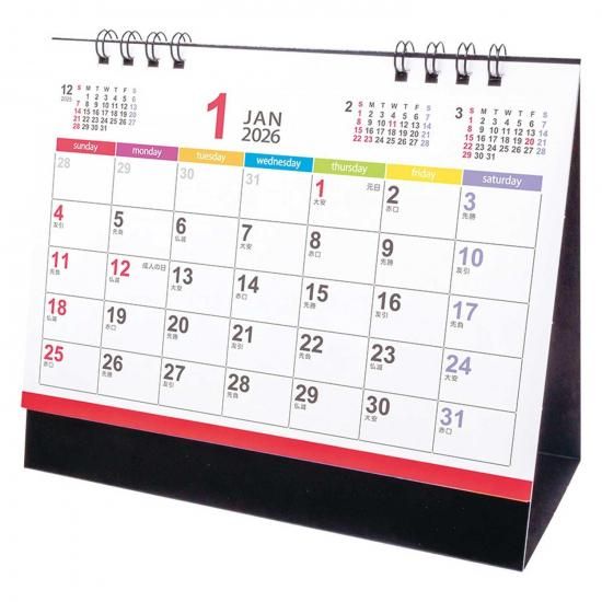 カラフルに色分けされて見やすい卓上カレンダー。