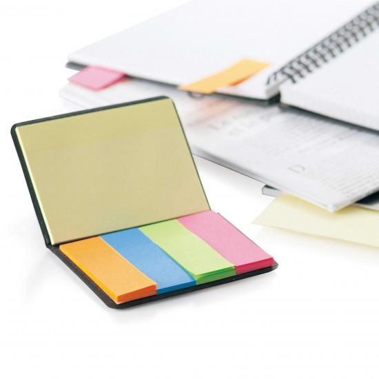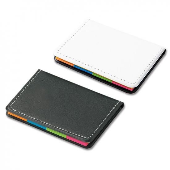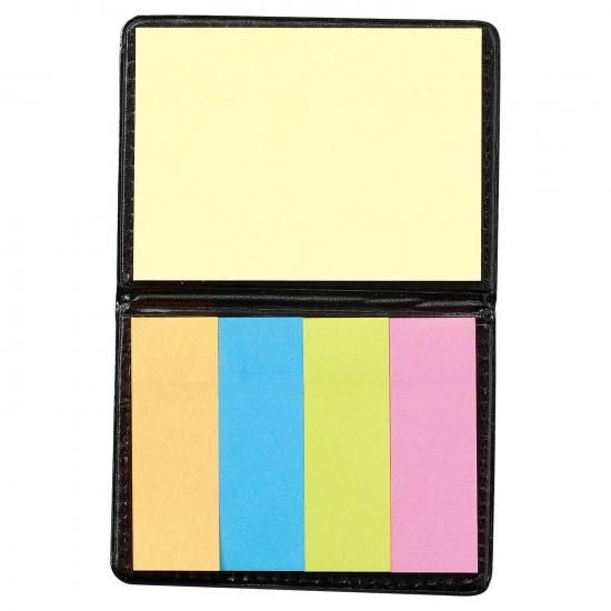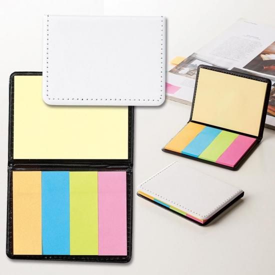 ステッチ入りのレザー調で高級感のあるカバーに2サイズ5色のフセンメモをセットしました。目印用のミニサイズとメモ用の大きなサイズがあり、色で分類することも可能です。学生から社会人、主婦の方まで幅広く便利にお使いいただけるアイテムです。