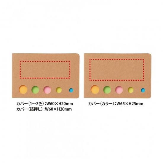 カバー(1〜2色):W60×H20mm、カバー(箔押し):W60×H20mm、カバー(カラー):W65×H25mm