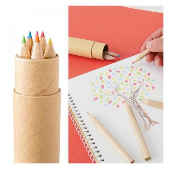 再生紙を使用した環境にやさしいパッケージの色鉛筆6本セット。