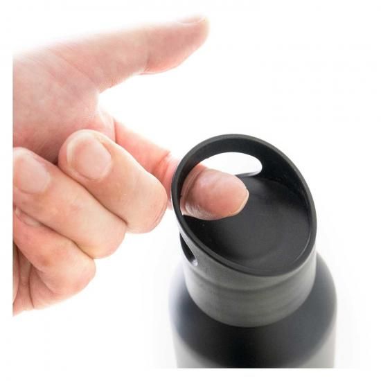 指に掛けて持ちやすいキャップ構造で、アウトドアやスポーツ時の水分補給や普段使いにもちょうどいいサイズ感です。