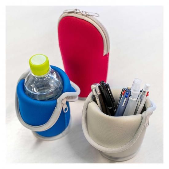 ファスナーを閉じてペンケース、開ければペン立てに!