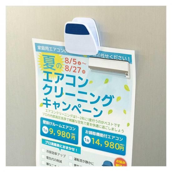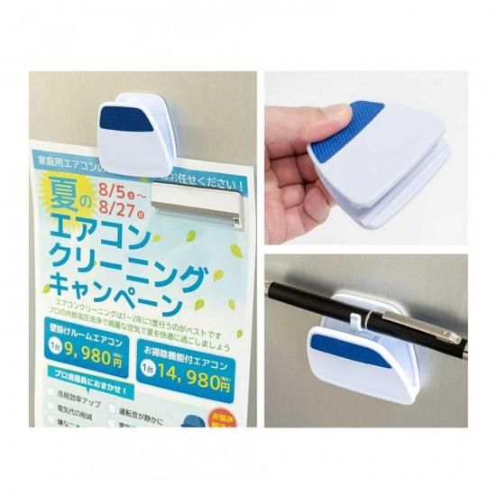 冷蔵庫やホワイトボードなどにメモを留めておけるマグネット付きクリップ。