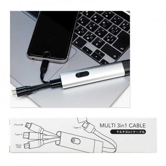 ポートの形状が異なる複数の端末に対応できる充電用ケーブル。