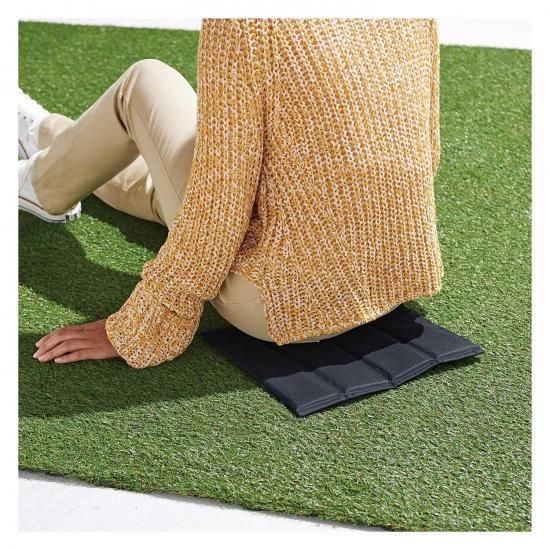 たたんでコンパクトに収納できる携帯クッションシート。