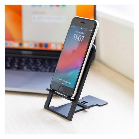 USBコードを差したままでも端末を置くことができ、リモート会議等にも使いやすい仕様です。