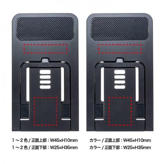 1〜2色/正面上部:W45×H10mm、1〜2色/正面下部:W25×H35mm、カラー/正面上部:W45×H10mm、カラー/正面下部:W25×H35mm