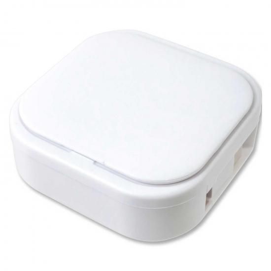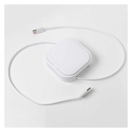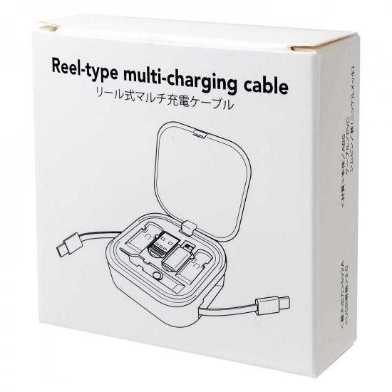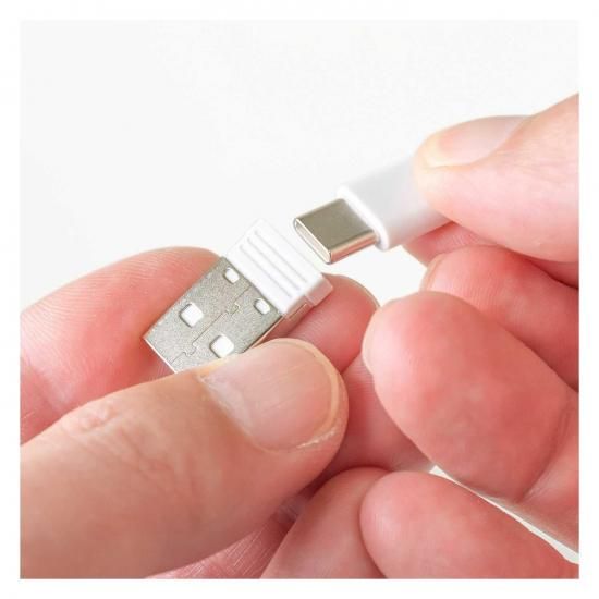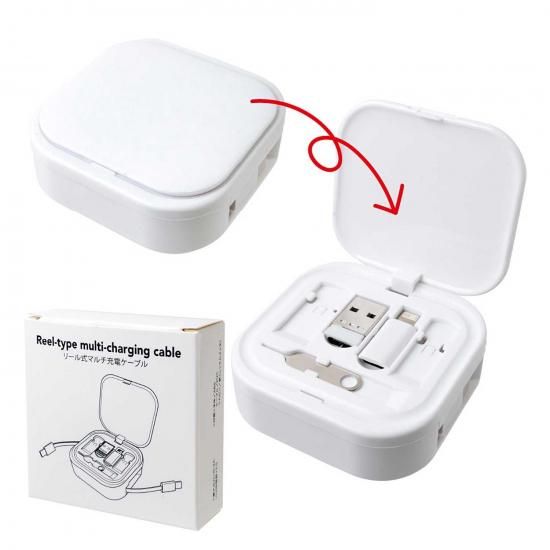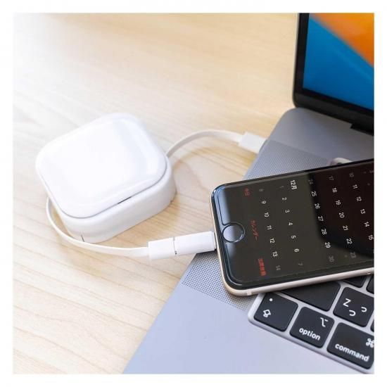 充電コードのプラグ形状はUSBタイプCになっており、カバーを開けるとUSBタイプAとアイフォン用アタッチメントが付いており複数の端末に対応できます。