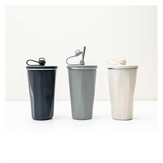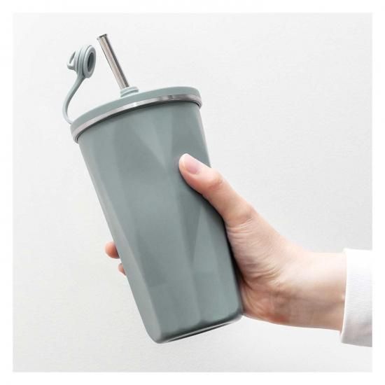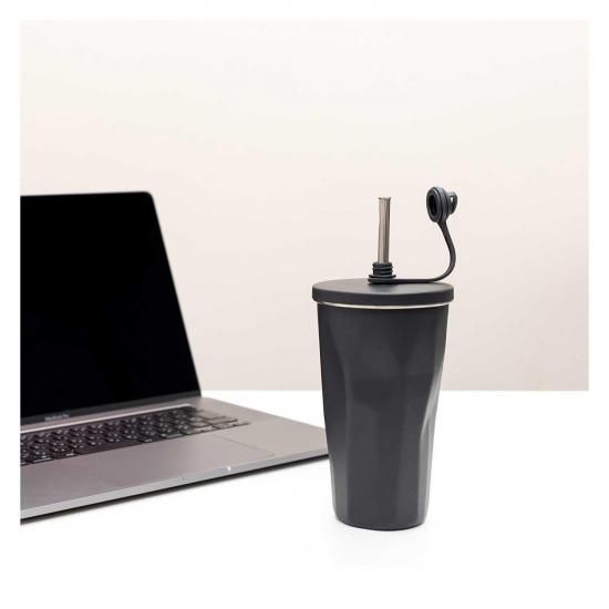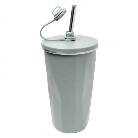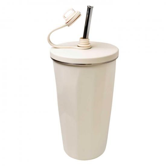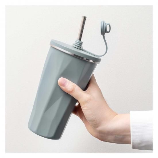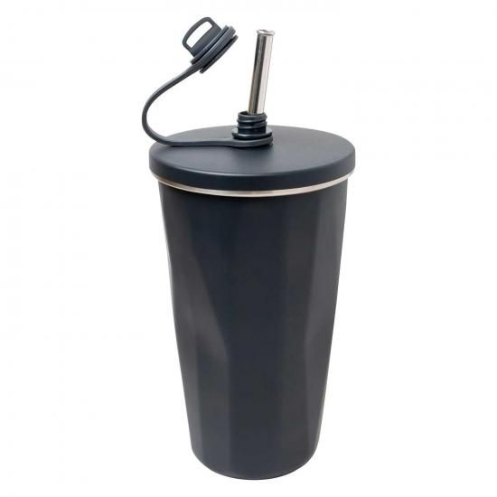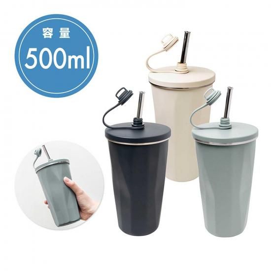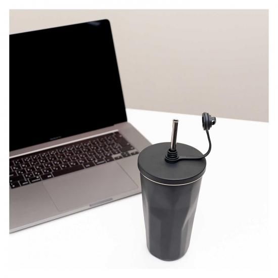 キャップを外すとストローが飛び出す、ステンレス製の2重構造タンブラーです。