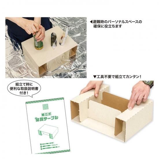 災害時に避難先での食事や作業など、多用途に対応できる組立式の防災テーブル。