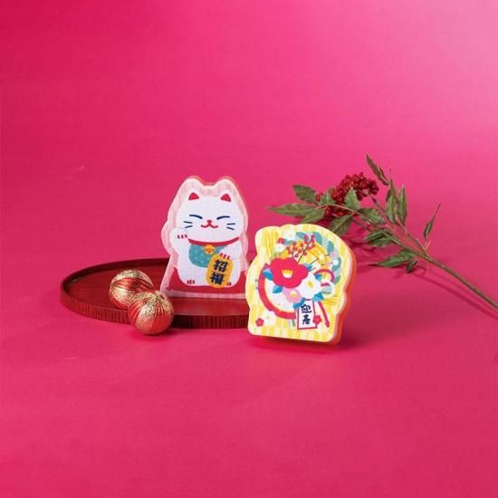商品サイズ:招き猫:約8.8×11×3cm、正月飾り:約9×10×3cm