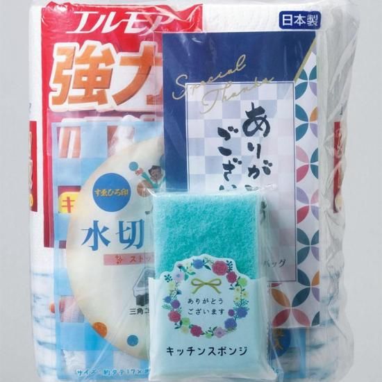 商品サイズ:キッチンタオル2ロール、マチ付フリーザーバッグ2枚入、水切りネット5枚入、キッチンスポンジ1個、福袋:32×28×11.5cm