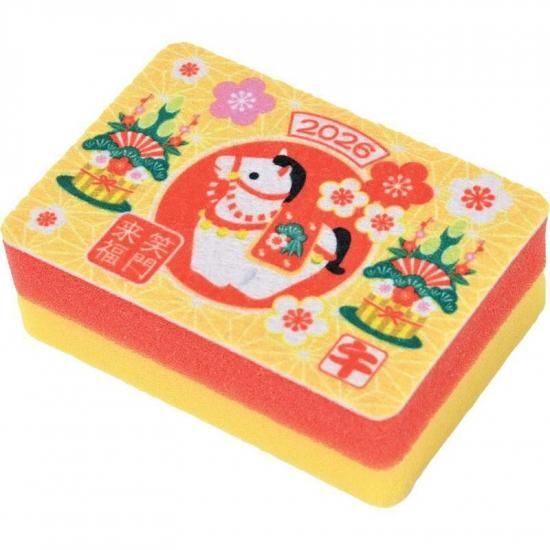 干支「午」をデザインした2層構造のキッチンスポンジです。