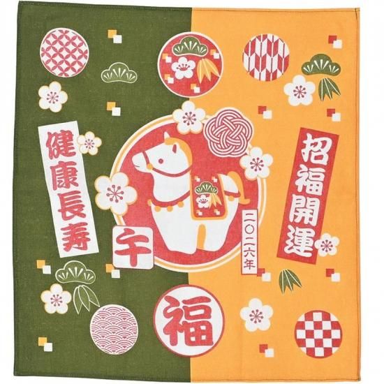 「招福開運」「健康長寿」を願い干支「午」をモチーフにしたふきんです。